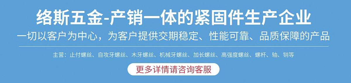 主要生產非標件(止付螺絲、自攻牙螺絲、木牙螺絲、機械牙螺絲、加長螺絲、高強度螺絲、螺桿、軸、銷等)和標準件(國標、美標、德標、日標、英標等)。